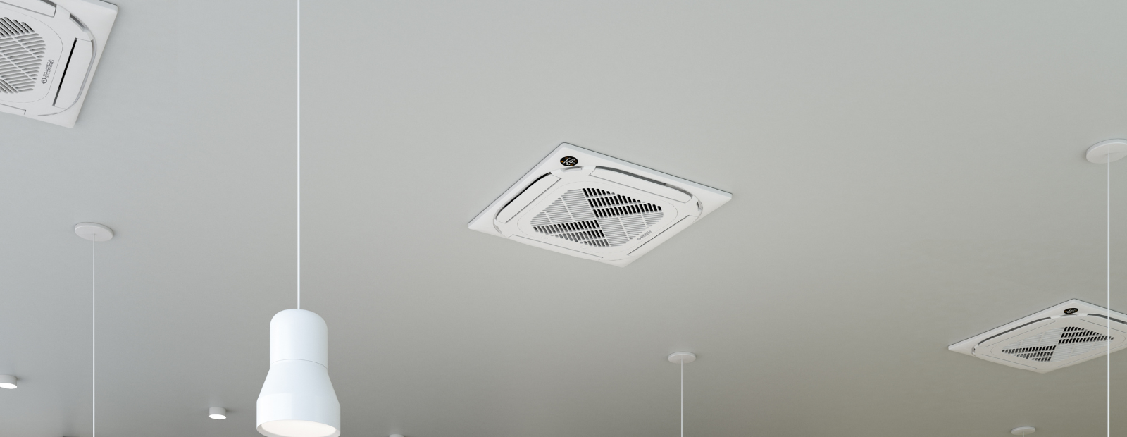 Das Innengerät ist mit einer Dekorblende mit Digitalanzeige, unabhängiger Klappensteuerung und Luftauslassschlitzen auch an den Ecken ausgestattet, um eine bessere Luftverteilung und einen höheren Klimakomfort zu gewährleisten.