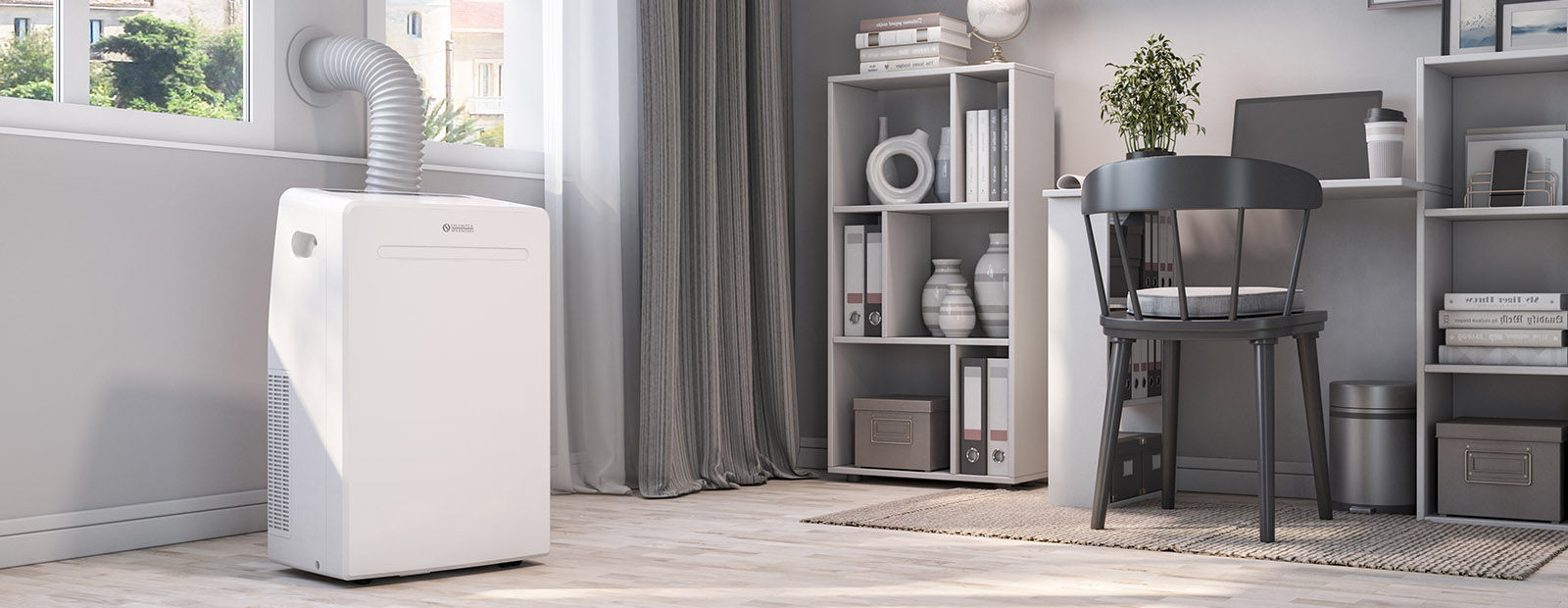 Dolceclima Aira 10 [W NW] ist eine in Italien entwickelte mobile Klimaanlage, die eine Leistung von 10.000 BTU/h mit einem klaren, minimalistischen Design verbindet.