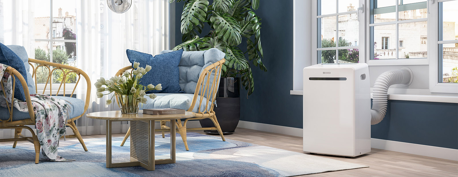 Dolceclima Aira 14 [S NW] ist eine in Italien entwickelte mobile Klimaanlage, die eine Leistung von 14.000 BTU/h mit einem klaren, minimalistischen Design verbindet.